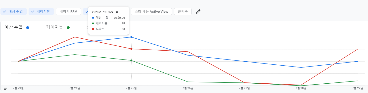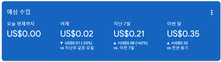 승인을 받은 후 10일이 지났습니다. 가장 놀라웠던 점은 AdSense 페이지에서 매일매일 수익을 확인할 수 있다는 것이었습니다. 수익 창출이 현실로 다가오는 순간은 정말 신기했습니다. 물론 초기 수익은 매우 미미 했습니다.